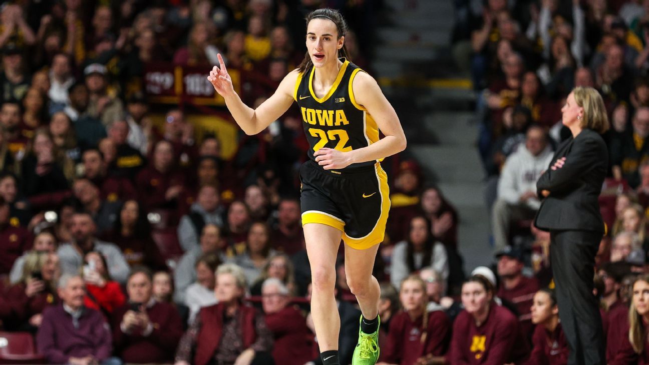 Minnesota kontra Nie. 6 Strażniczka ze stanu Iowa kontynuowała swój rekordowy pościg, mijając legendę Kansas Jayhawks Lynette Woodard i zdobywając najwięcej punktów w koszykówce kobiet z college'u w zwycięstwie 108-60 nad Hawkeyes.